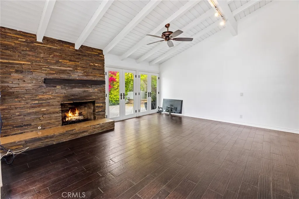 This stunning home, recently renovated, features a bright and open floor plan with vaulted wood beam ceilings, creating a sunny and welcoming atmosphere throughout. The abundance of natural light is accentuated by floor-to-ceiling windows and double French glass doors. Fans in every room ensure comfort and ventilation. The living area showcases a beautiful stone fireplace and seamlessly leads to a large private patio, perfect for indoor-outdoor living. The Zen backyard is a tranquil retreat with a fountain, covered area, and immediate access to a green belt ideal for entertaining guests. The kitchen is a chef's dream with granite countertops, custom white tile backsplash, white custom cabinetry, convection oven, microwave, warming drawer, brand new refrigerator and stove, chef-grade disposal, and a breakfast bar for additional seating. Additionally, the garage boasts a large brand-new freezer, enhancing food prep and storage options. The master bedroom offers direct access to the private patio and a spacious bathroom with extra vanity space. There is ample storage space throughout the home, including organized closets in every room. Gardens situated off of each room further enhance the overall appeal. Enjoy the new finishes such as the brand new mantle, new sliding bathroom door, and new lights and mirrors throughout. The property includes a brand-new washer and dryer, adding convenience to daily living. The 2-car garage provides secure parking, and brand-new washer and dryer. Situated on a cul-de-sac with quick access to Vista Del Oro, the location is perfect for residents of Eastbluff, offering proximity to excellent public and private schools, shopping centers, restaurants (just 2 blocks away), parks, and movie theaters. Fashion Island is less than a 10-minute drive. Don't miss the opportunity to experience the charm of this home. Contact AllView Real Estate to schedule your showing today!