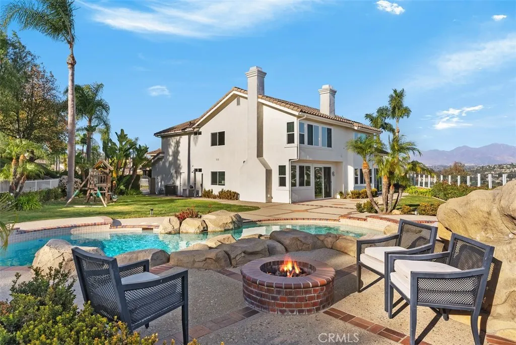 Awesome executive home with gated long driveway located in Moulton Ranch. View home with pool & spa and large pie shaped lot with large green area, a very special home a must to see!! 4 bedroom (one bedroom and bath with shower downstairs) see remarks below on bonus room, 1/2 bath downstairs, laundry room with gas or electric. New laminate flooring in most of the downstairs living area. Formal living and dining room with lots of windows make the home very light and bright, travertine flooring and newer carpet. Office downstairs as you enter home with built in desk and cabinets. Huge kitchen with island and lots of cabinets. Nice size family room off kitchen fireplace place and built ins, wet bar with sink. Upstairs: Huge master suite with pass through fireplace into huge bathroom with large tub, nice size shower, dual closets with custom built in and separate dual sink area. Two bedrooms upstairs located on other side of master has hall bathroom, large linen closet. And huge bonus room with built ins could be 5th bedroom if needed. Three car garage with built ins.