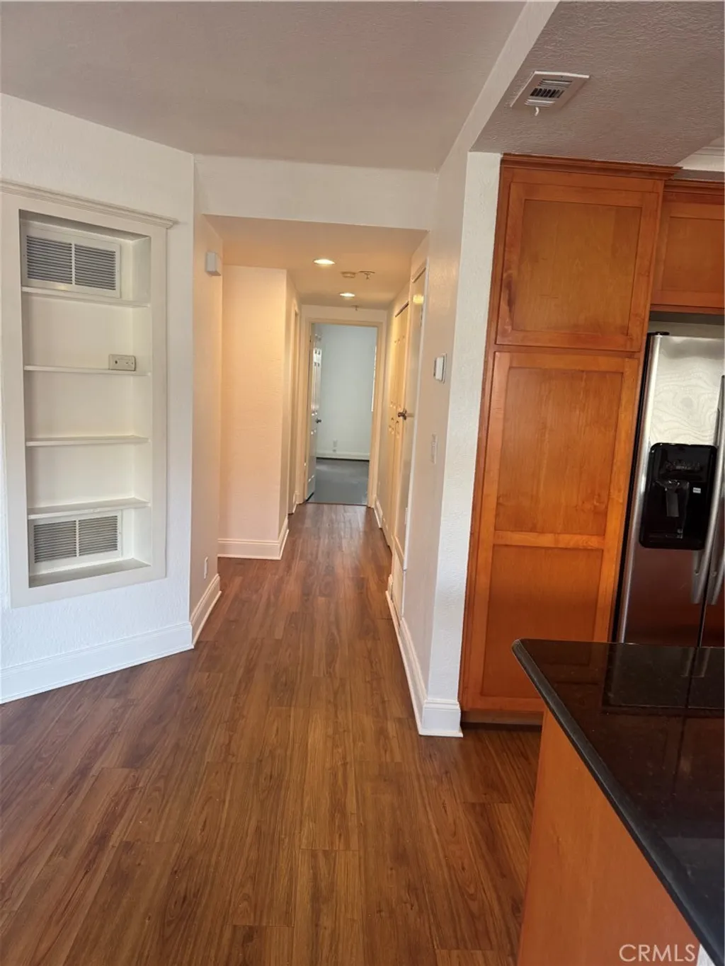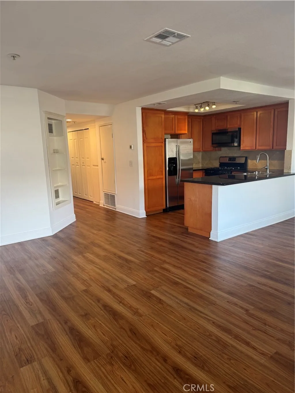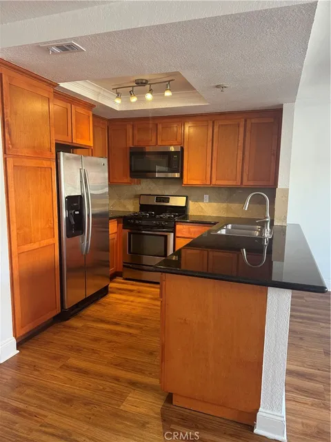 Beautiful condominium for Lease in the city of La Habra! Spacious Living Room and Dinning Room with ceiling fan. Open Kitchen to Living Room has granite counter tops, Stainless steal appliances. Laundry area in the hallway. The bathroom in the hall has tile flooring and granite counter top. The Bedroom by the hall side has laminate flooring and a closet with mirror doors. The main bedroom has laminate flooring, two closets with mirror doors, a main bathroom with tile flooring and granite counter top. The main bedroom also has a sliding door that leads to the balcony. There is gated parking under the condominiums, this property has two assigned parking spaces, there is also guest parking.