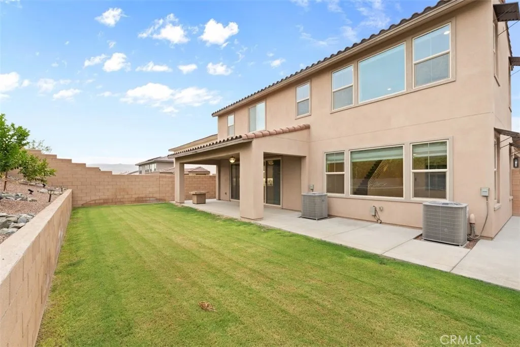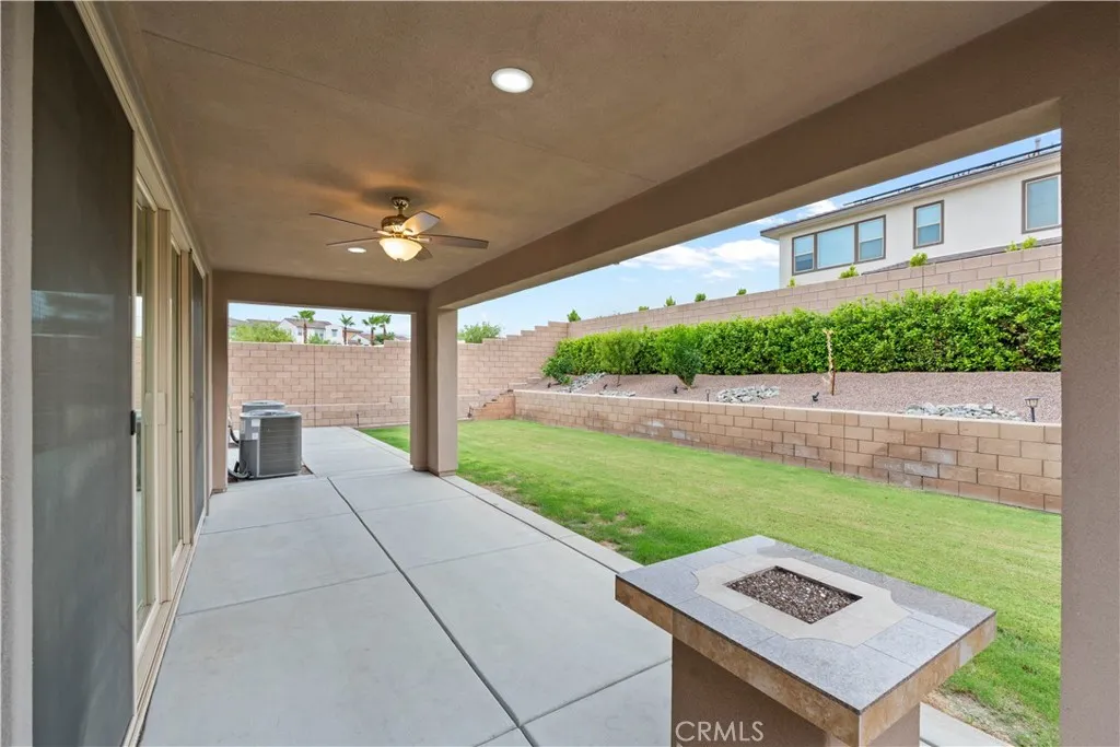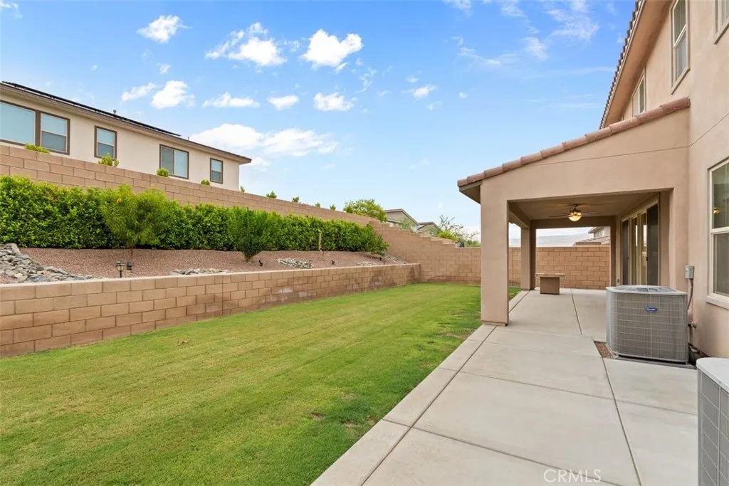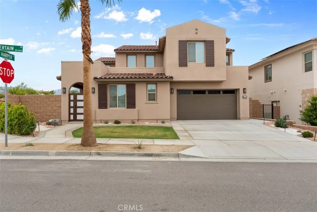 Spacious and beautifully maintained, this 4 bedroom, 4 bathroom home offers 2,733 sq. ft. of comfortable desert living in the highly desirable Grove community. Ready to move in, this home is located directly across from the community park and features a private side patio plus a fully landscaped backyard - perfect for entertaining or relaxing. Inside, enjoy a well-designed layout with generous living spaces and an open-concept kitchen and dining area. The owned solar system helps keep energy costs low year-round. The Grove community offers resort-style amenities, including three sparkling pools, a recreation area, a conference room with full kitchen (ideal for meetings or remote work), and picnic and BBQ areas. Conveniently located near shopping, dining, and top golf destinations, this home is the perfect blend of comfort, convenience, and community living.