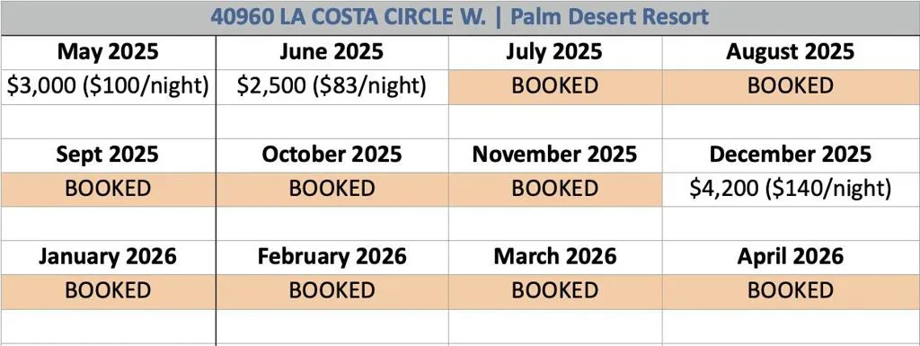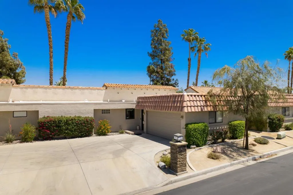 Available Dec 2025 only. FURNISHED MONTHLY RENTAL in Palm Desert Resort, Fully RENOVATED 3-bedroom, 2-full bath. Pricing varies by month see LAST photo for pricing- inquire for longer stays. Landlord pays all utilities, deluxe cable package, upgraded wifi, all appliances, full size W/D included! Single story home, no stairs, no unit above. King in Master, Queen in Guest, Queen memory foam sleeper sofa in 3BD/ office. NO carpet. Enjoy the security and luxury of Palm Desert Resort Country Club with SO many fun amenities! One of the LARGEST condos in the entire community, this home has been UPDATED top to bottom, OPEN FLOOR PLAN, kitchen with LARGE KITCHEN ISLAND, granite slab countertops and new paint throughout. Attached 2-car GARAGE with epoxy flooring and TONS of built in STORAGE. Two large bathrooms with WALK IN SHOWERS, plus a separate jacuzzi tub. EXTENDED PATIO with 180 degree mountain views and steps from the pool! As a tenant, you can enjoy the 18-hole golf course, clubhouse, bar/dining, pro shop, 14 lighted tennis courts, 20 community pools, pickle ball. Come enjoy the sunshine in Palm Desert. Turnkey furnished, ALL APPLIANCES & FURNITURE INCLUDED, private BBQ. No pets or smoking.