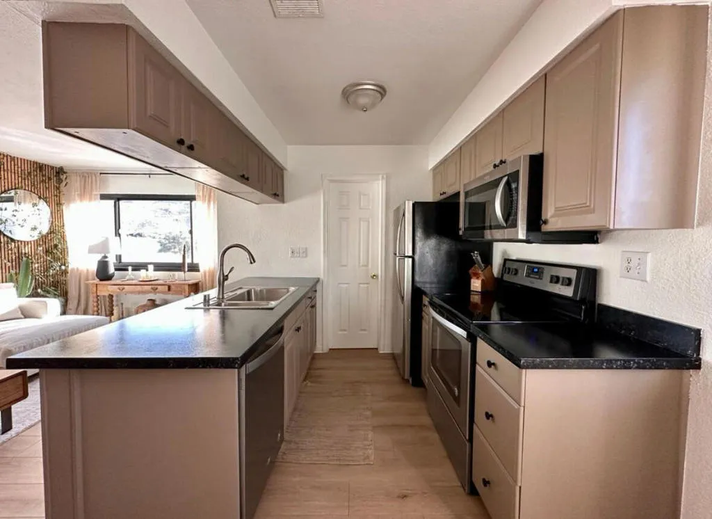 Don't miss this limited-time offer! Move in before July 15th, 2025, and enjoy your first month of rent completely FREE! Located in a serene neighborhood, this 2-bedroom,1-bathroom apartment offers breathtaking mountain views. Situated on the upper floor, this 924 sq. ft offers comfort and convenience and is being offered fully furnished. Inside, you will discover a recently remodeled interior with plenty of storage and natural light in all the rooms. The kitchen is equipped with essential appliances including a dishwasher, freezer, refrigerator, microwave, and a convenient walk-in pantry. The apartment comes with a shared 2-car garage that provides secure parking for your vehicle, and a washer & dryer located downstairs of the unit. The community includes 2 pools and spas, additionally, residents can enjoy easy access to nearby amenities such as the Cross Trail Hike, The Living Desert, great school district and El Paseo shopping district and fine dining.