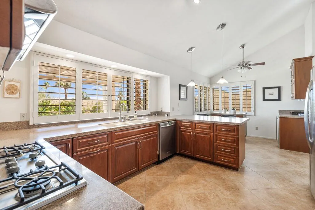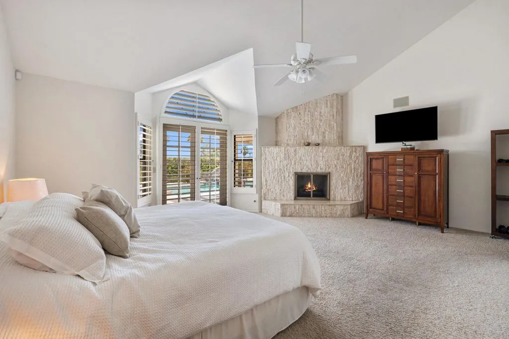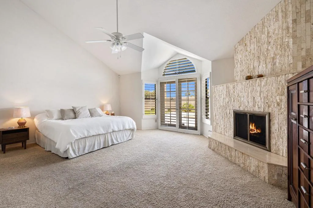 In the heart of South Palm Desert near Ironwood, Marrakesh, Reserve, Vintage & Big Horn golf clubs. Beautiful mountain views from private yard with private pool & spa. Three separate bedrooms with bath. Spacious main bedroom with fireplace and two separate bath & closet areas connected by large walk thru shower. Guest bedrooms have 1-king & 2-double beds. Separate office and direct access from 3-car garage into house. Living area with fireplace and family room off kitchen area.Close to Ironwood Park and grassy greenbeltAvailable January thru April 2026.