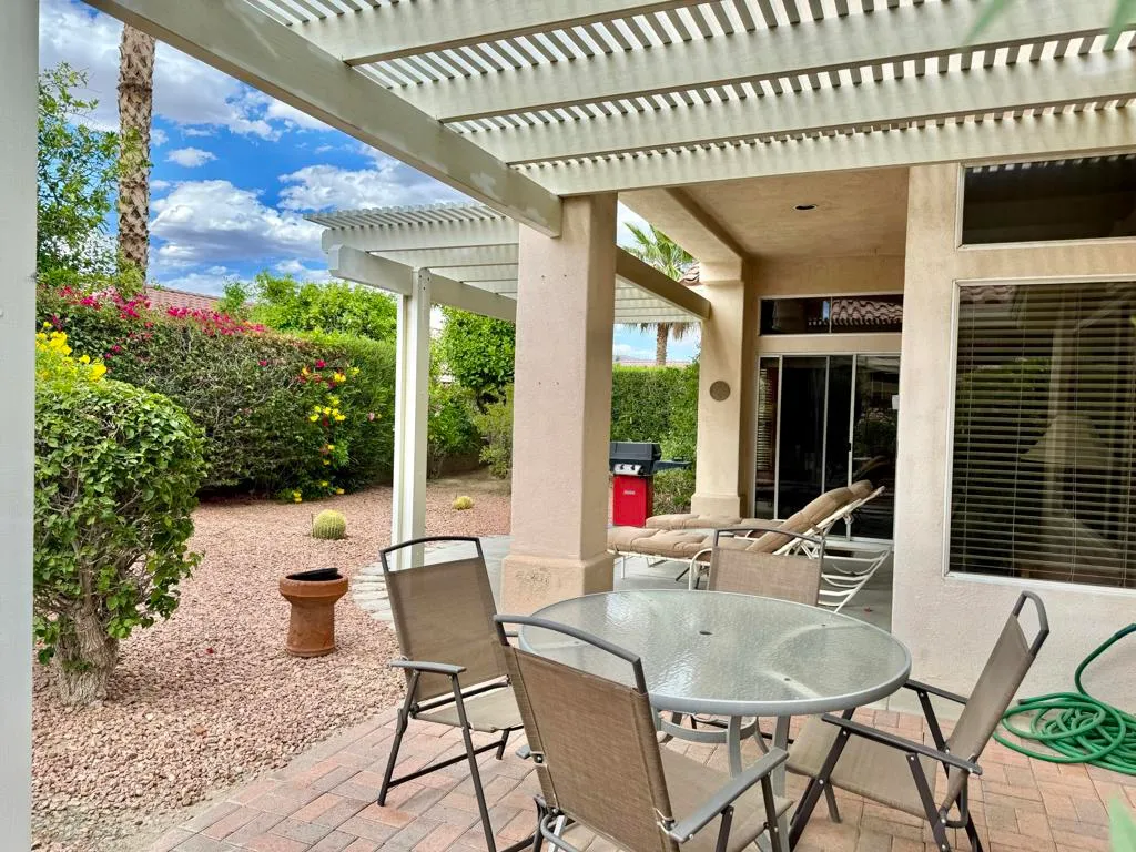 4 - 5 month min preferred. AVAILABLE NOW FOR THE 2025/2026 season. Also available for an annual lease at reduced rent. Sun City Palm Desert is an active senior community For Those 55+ - Gorham floor plan - furnished. Primary Suite Is at the opposite end from guest bedroom & guest bathroom. Primary bedroom has a king size bed and large flat screen TV. The bathroom has oversized walk in shower, dual sinks, 2 closets and mirrored doors. Guest bedroom with full size bed and TV with access to a full Bathroom with shower over tub. Living room is attractively and comfortably appointed with flat screen TV. The kitchen has a gas cooktop with good cabinet and counter space and a breakfast bar. Dining Area with bay window overlooking yard. Efficient, built-in office area. Extended patio has an alumawood overhang, patio set and lounge chairs. Washer/Dryer and sink In garage with 2 car parking and storage - HOA plan TV w/extended channels and WI-FI Internet Connection are also included. Guard/gated community, Golf, Pools, Tennis, pools, pickle ball, restaurants, postal center, +++ and so convenient to clubhouses.