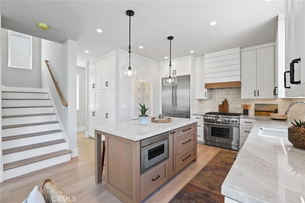 Welcome to your dream coastal retreat at 825 W Bay Avenue Unit A. This stunning new construction condo offers a perfect blend of luxury and comfort, spanning 1,732 square feet of meticulously designed living space. With 3 spacious bedrooms and 4 elegant bathrooms, this home provides an ideal setting for relaxation and entertainment with views of the Newport Harbor from every floor. Step inside to discover the seamless flow of hardwood floors underfoot, enhanced by the warm glow of chandeliers and recessed lighting. The open kitchen is a chef's delight, featuring a modern island, Thermador appliances, and a custom range hood. Enjoy meals in the dining room or at the island, creating a versatile space for casual dining or entertaining. The living area is anchored by a Taj Mahal Quartzite fireplace, providing a cozy ambiance for gatherings. Retreat to the primary ensuite, complete with a double sink bathroom and a walk-in closet. Outdoor living is redefined with a stunning private roof deck with panoramic bay views. A convenient third story powder room also makes it easy to host those summer barbecues with a view. Embrace the Newport Beach lifestyle in this exquisite condo, where every detail caters to your comfort and style. Located next to a premiere bay beach perfect for soaking in the OC sun, 825 W Bay Unit A is ready to welcome you home.