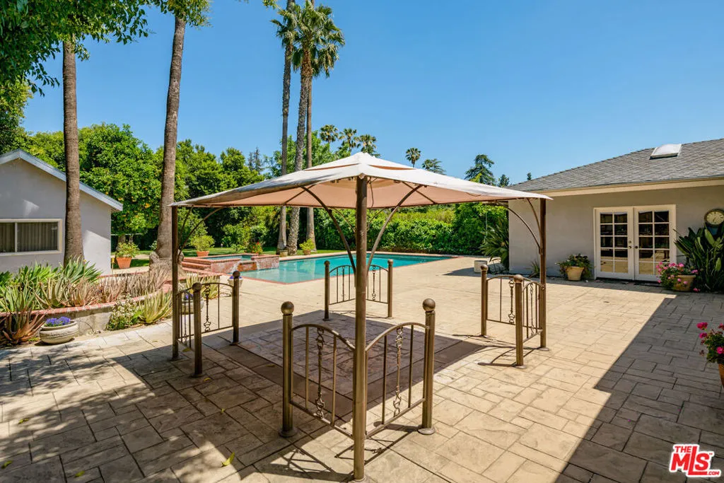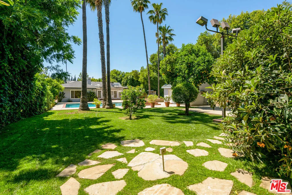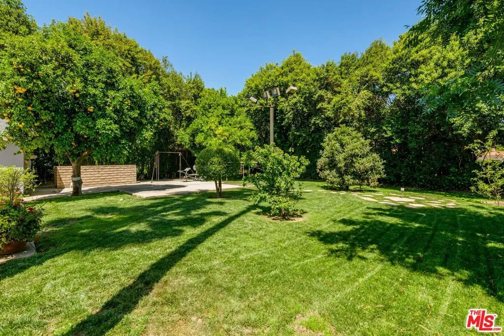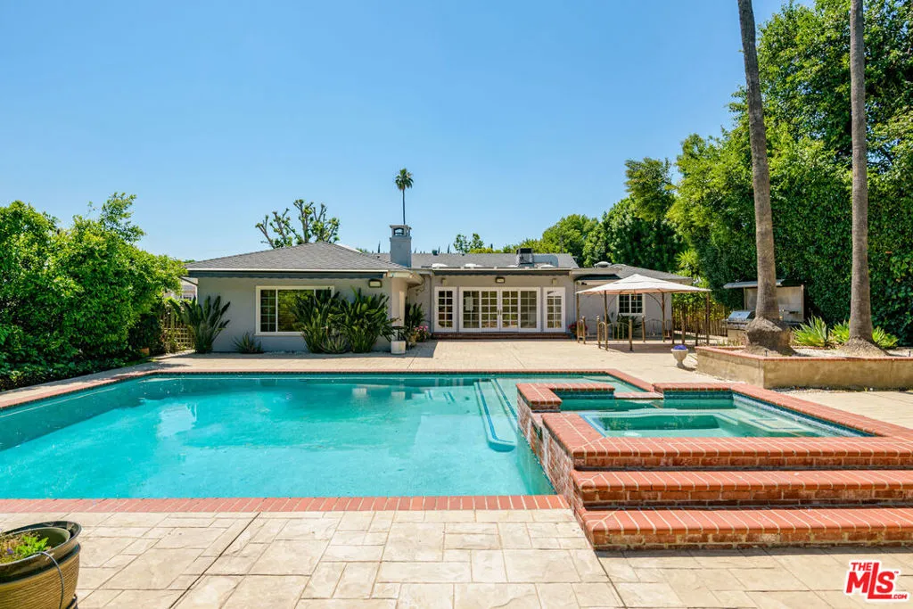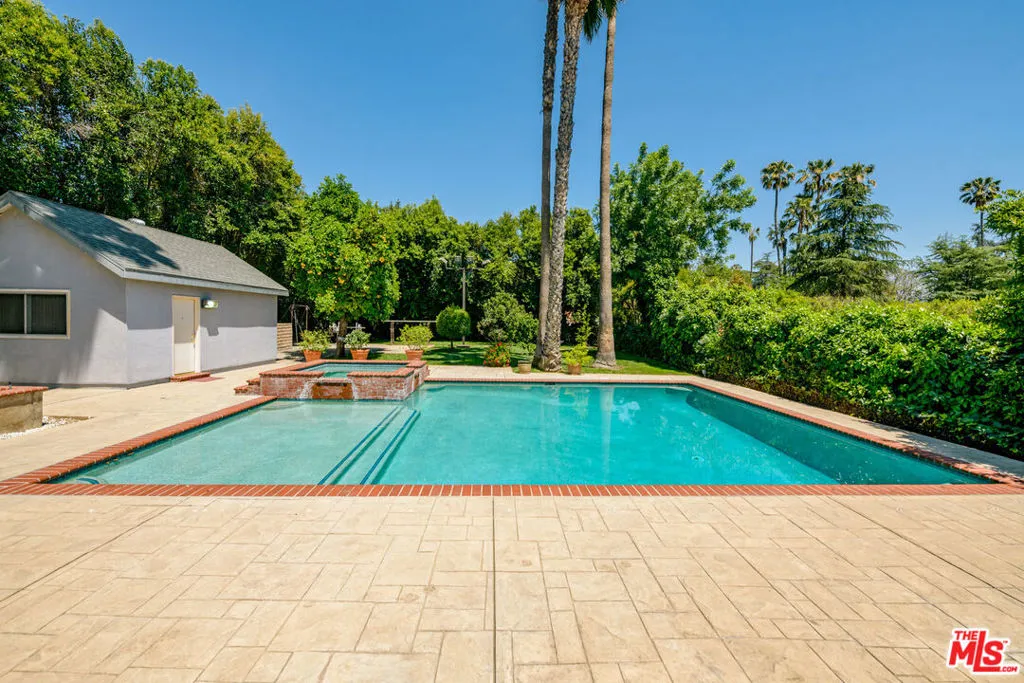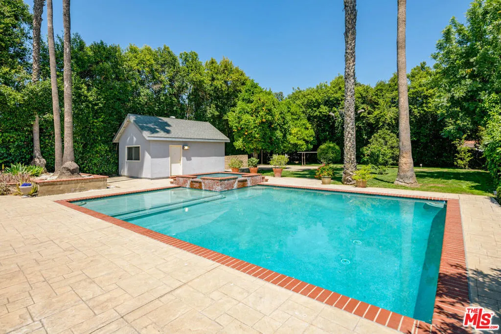 Nestled behind private double gates on an expansive, beautifully landscaped lot, this distinguished single-story estate blends timeless traditional architecture with modern luxury and unmatched privacy. Located in Northridge's coveted Sherwood Forest enclave, the home offers rare tranquility while maintaining exceptional access to city conveniences.Featuring 4 generous bedrooms and 4.5 bathrooms, the residence is bathed in natural light and thoughtfully crafted for both refined entertaining and everyday living. The heart of the home includes spacious formal and casual living areas, a sophisticated library or home office, and a seamless indoor-outdoor flow ideal for Southern California living. Modern upgrades elevate this home's comfort and efficiency, including solar panels, three electric car charging stations, and four-zone HVAC systems with individual AC units for tailored climate control. The entertainer's backyard is a private resort-style oasis, complete with a heated pool and spa, built-in BBQ, mature greenery, and a charming pool house outfitted with a private sauna for the ultimate wellness retreat. A grand circular driveway and attached garage provide striking curb appeal and generous parking for family and guests. As well as a 45 foot RV parking and includes electrical and sewer hook ups. Tucked away on a quiet residential street, this estate is just moments from top-rated schools, shopping, dining, and offers quick access to the 405, 101, and 118 freeways providing a convenient commute to the Westside, Santa Monica, Studio City, and downtown Los Angeles. Whether hosting elegant gatherings or enjoying peaceful afternoons by the pool, this exceptional home is a rare offering that embodies the best of privacy, comfort, and classic California living.