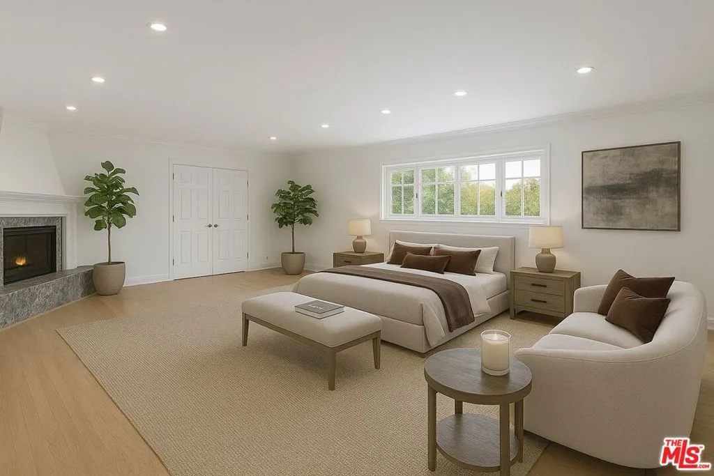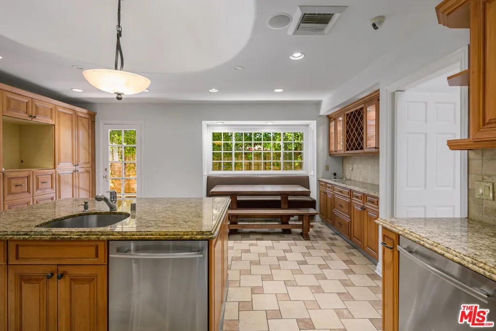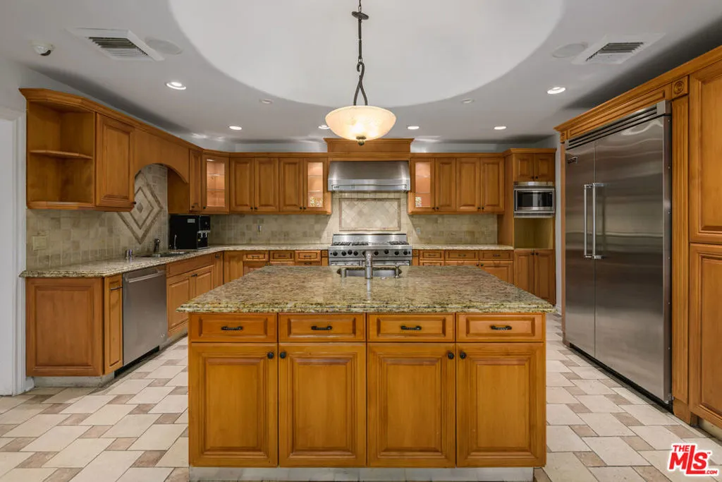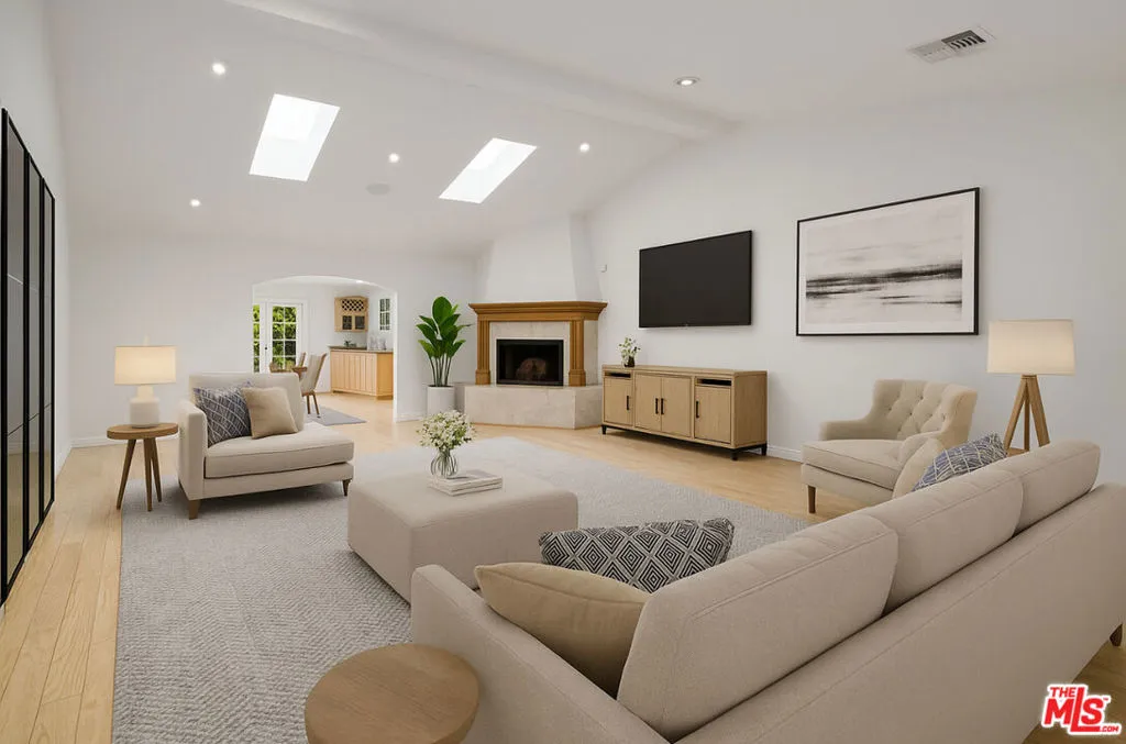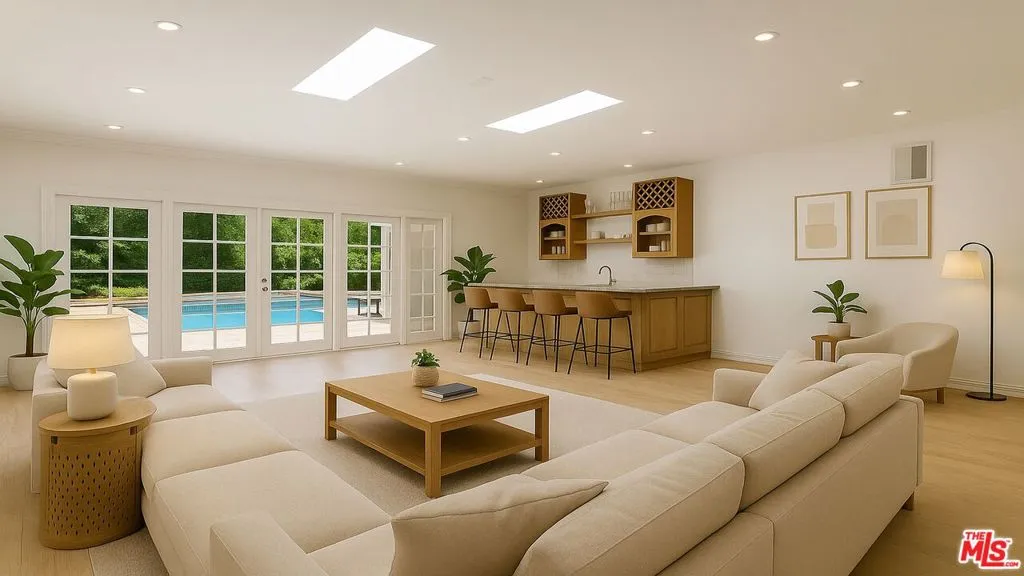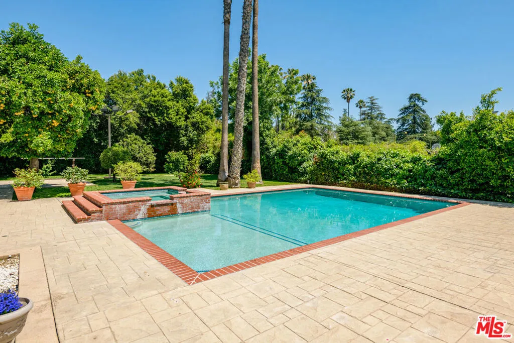 Nestled behind private double gates on an expansive, beautifully landscaped lot, this distinguished single-story estate blends timeless traditional architecture with modern luxury and unmatched privacy. Located in Northridge's coveted Sherwood Forest enclave, the home offers rare tranquility while maintaining exceptional access to city conveniences.Featuring 4 generous bedrooms and 4.5 bathrooms, the residence is bathed in natural light and thoughtfully crafted for both refined entertaining and everyday living. The heart of the home includes spacious formal and casual living areas, a sophisticated library or home office, and a seamless indoor-outdoor flow ideal for Southern California living. Modern upgrades elevate this home's comfort and efficiency, including solar panels, three electric car charging stations, and four-zone HVAC systems with individual AC units for tailored climate control. The entertainer's backyard is a private resort-style oasis, complete with a heated pool and spa, built-in BBQ, mature greenery, and a charming pool house outfitted with a private sauna for the ultimate wellness retreat. A grand circular driveway and attached garage provide striking curb appeal and generous parking for family and guests. As well as a 45 foot RV parking and includes electrical and sewer hook ups. Tucked away on a quiet residential street, this estate is just moments from top-rated schools, shopping, dining, and offers quick access to the 405, 101, and 118 freeways providing a convenient commute to the Westside, Santa Monica, Studio City, and downtown Los Angeles. Whether hosting elegant gatherings or enjoying peaceful afternoons by the pool, this exceptional home is a rare offering that embodies the best of privacy, comfort, and classic California living.